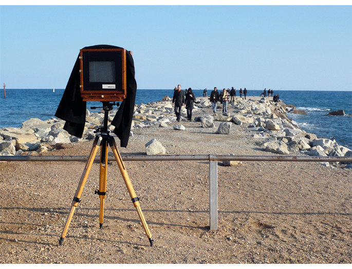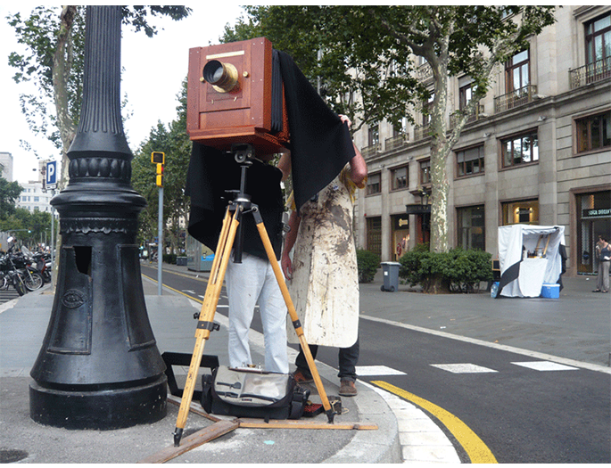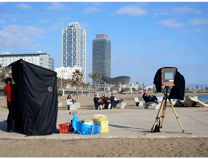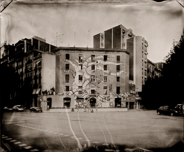 La propia retórica formal que caracteriza al ambrotipo –positivo directo de colodión húmedo sobre placa de vidrio- junto a la inevitable inversión lateral que presenta la imagen, hacen que el espacio actual conocido se nos manifieste extraño y en ocasiones fantasmagórico, pues debido a los largos tiempos de exposición empleados, peatones y vehículos en movimiento se tornan invisibles. En definitiva, una mirada arcaica desde el espacio presente. Este proyecto fue becado en 2008 por la Fundación Arte y Derecho.