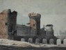Se trata de retratar la antigua fortificación medieval que rodeaba Barcelona y que construída entre los siglos XIII y XIV, fue ampliada y modificada en siglos posteriores. Esta gran construcción de torres, baluartes y murallas fue derribada casi por completo durante la segunda mitad del s. XIX. Sólo un pequeño tramo de la muralla sigue todavía en pie; el correspondiente a las Drassanes – Atarazanas- un inmenso edificio de origen gótico destinado a la construcción de navíos. La demolición de las murallas, propició y permitió el crecimiento de la ciudad con el denominado Eixample – Ensanche- configurando Barcelona tal y como hoy la entendemos.
