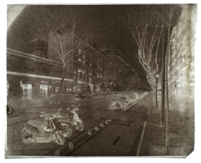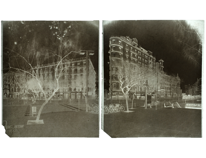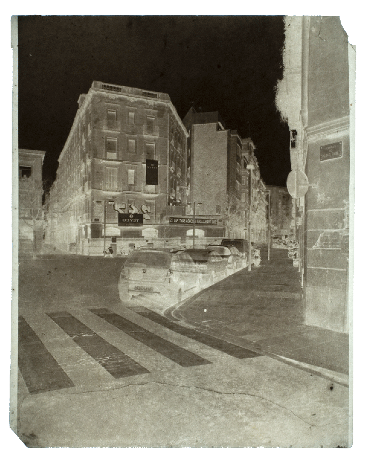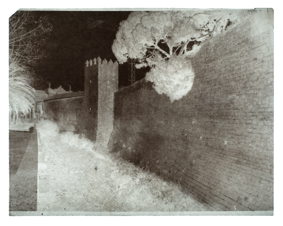 El proyecto trata pues de fotografiar lo que ahora ya no es visible pero que durante mucho tiempo, sí estuvo precisamente allí, fijando y marcando de manera clara y efectiva los límites de la ciudad. De este modo, estas fotografías -en realidad negativos de papel- procuran evocar un mundo ya desaparecido pero aún rastreable y en cierta manera, todavía presente en la geografía de la ciudad actual. Fotografiar lo infotografiable por inexistente, es lo que me parece más sugerente. De ahí el que este proyecto se construya a base de imágenes en negativo, imágenes que presentan una inversión lateral y en sus tonos y que por tanto, nos muestran una ciudad no visible . Este proyecto se realizó mediante la técnica del negativo de papel encerado, un procedimiento ideado a mediados del siglo XIX por el fotógrafo francés Gustave Le Gray ideado para la fotografía de paisaje y arquitectura. El formato original de estos negativos es de 18×24 cm.
